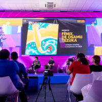 Logo no início, Marina Shoji e Marcelo del Greco apresentaram a produção de 2022, falaram sobre o processo de fusão da Editora JBC com o Grupo Companhia das Letras, os títulos que estão em lançamento no evento (que apresentamos aqui) e trouxeram a sequência de novos títulos que estão confirmados para licenciamento pelo selo Mangás JBC: Os Cavaleiros do Zodíaco: Saint Seiya – Final Edition, Fullmetal Alchemist – 20th Anniversary Book, Zom 100, The Fable, Mermaid Scales and the Town of Sand, e mais dois títulos de Osamu Tezuka: Fênix e Astro Boy.